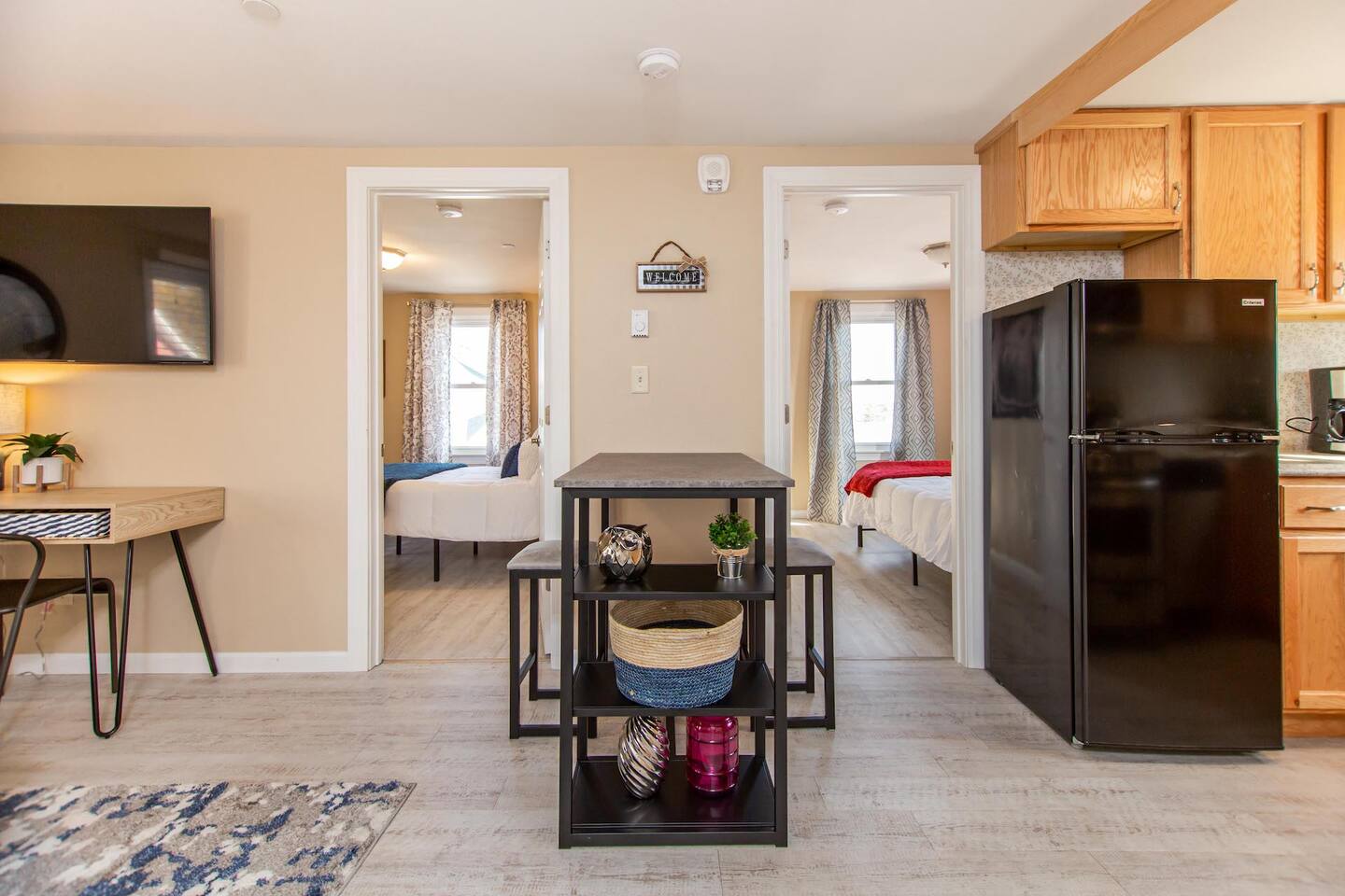 There is only one provided off-street parking spot at the rear of the building. Please park any additional vehicles or trailers on the street in front of the building. There is an exterior security camera with views of the building entrances and parking area.